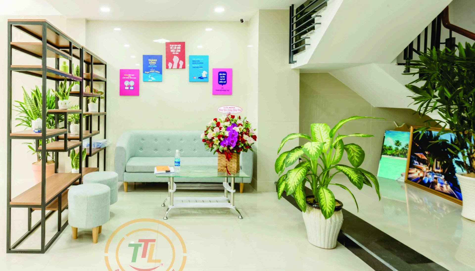 •  Khu vực tiếp khách chung: bộ bàn ghế sofa, tranh động lực, cây xanh , bảng tên công ty trong nhà và trước tòa nhà.