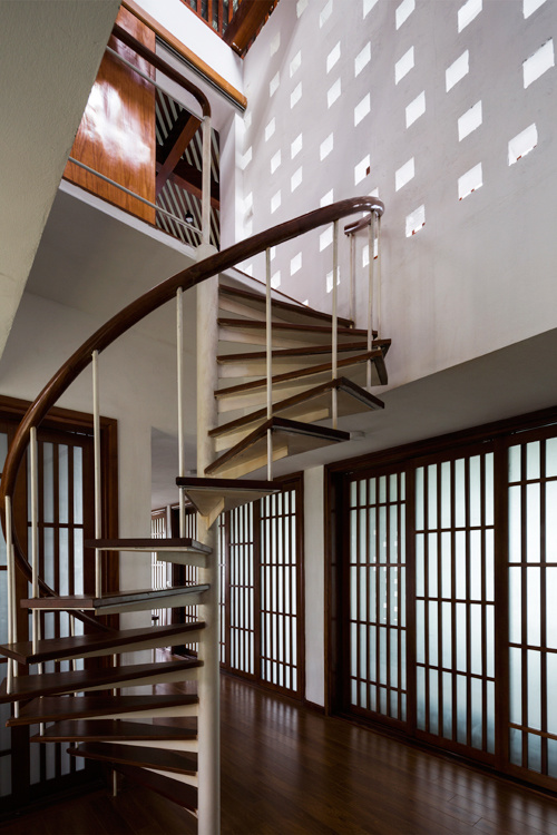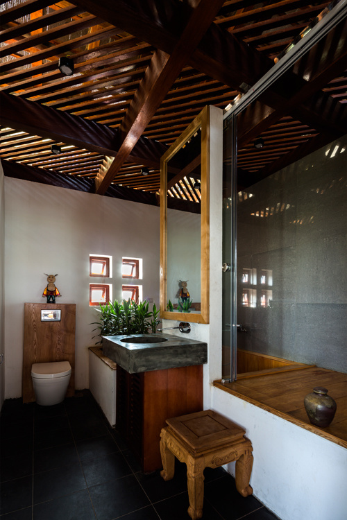 KTS đã vận dụng kỹ nghệ làm gỗ truyền thống cho phần mái và hệ cửa. Nhờ vậy, gia chủ có