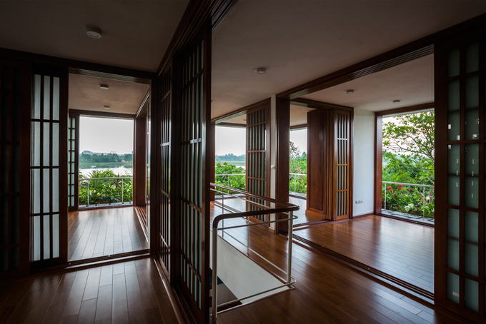 Ở các tầng đều có hệ cửa lớn và ban công đón nắng, view nhìn ra hồ.