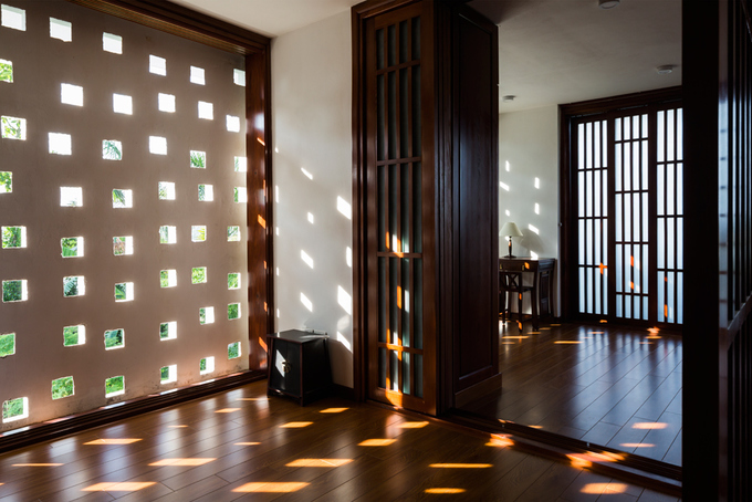 Ở phía Nam là bức tường gạch lỗ vừa giúp thông gió nhưng vẫn duy trì được sự riêng tư