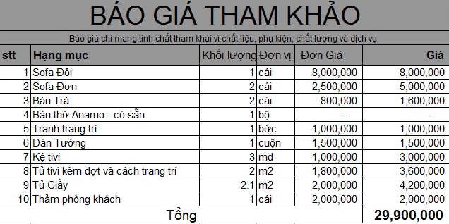 Rất mong KTS tư vấn giúp tôi 1 phòng khách với phong cách hiện đại trong phạm vi ngân sách khoảng 30 triệu.